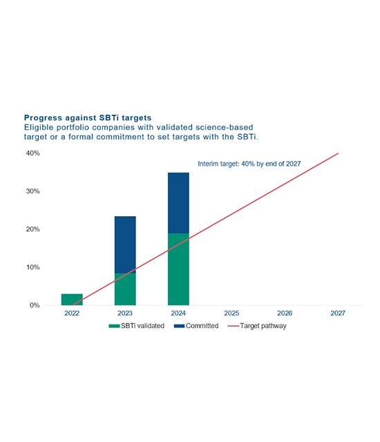 Scope 3 Portfolio Targets: CVC commits to 40% of its eligible private equity and listed equity investments by invested capital setting SBTi validated targets by 2027, and 100% of its eligible private equity and listed equity investments by invested capital setting SBTi validated targets by 2035.