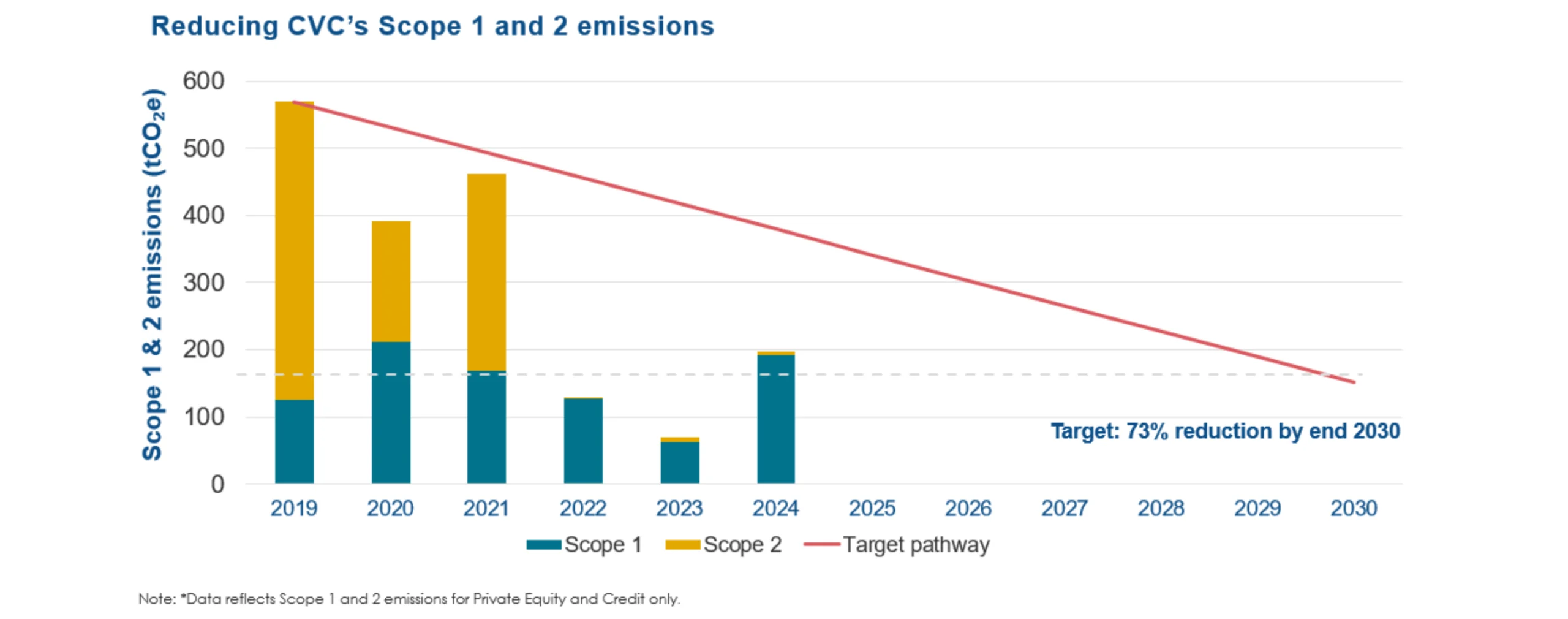 Scope 1 and 2: CVC commits to reduce absolute Scope 1 and 2 GHG emissions by 73% by 2030 from a 2019 base year.